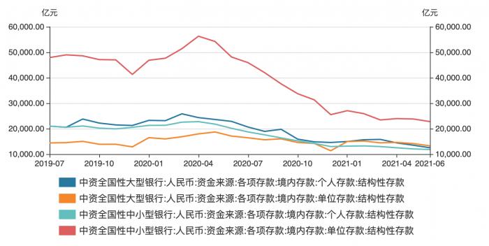 央行日前发布的数据显示,截至6月末,全国商业银行结构性存款余额降至6.04万亿元,较2020年4月末的最高点“腰斩”,其中中小银行结构性存款余额降幅接近60%。