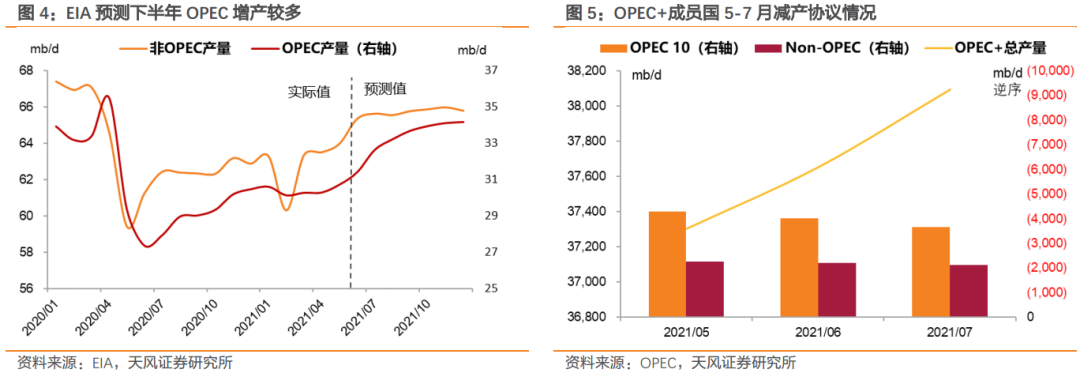 但需注意,EIA数据也许低估了下半年原油供给。EIA公布7月短期能源预测时,OPEC会议尚未召开,其估计的OPEC原油产量增幅比OPEC实际公布的小,因此还应进一步调整原油价格估计。