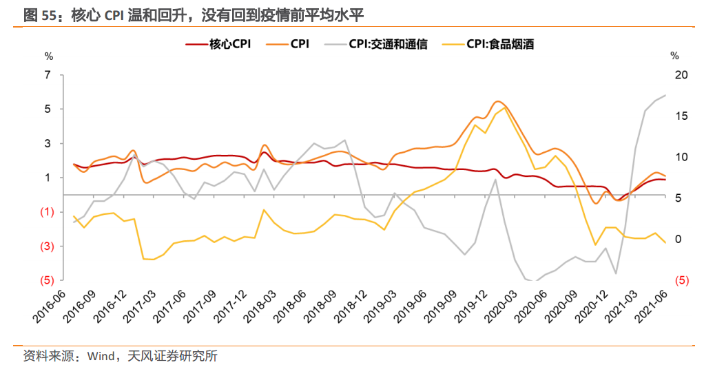 二季度GDP增速7.9%,两年平均增速5.5%。根据央行工作论文对GDP潜在增速的测算,2021年GDP潜在增速约为5.7%[1],实际增速仍位于潜在增速附近。