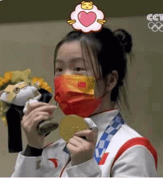 前有杨倩戴着小黄鸭发卡,萌萌哒头顶比心;