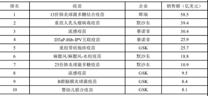 而除开新冠疫苗这一重磅疫苗外,根据2020年全球销售额前10的疫苗品种榜单显示,全球重磅疫苗品种还有13价肺炎球菌多糖结合疫苗、重组人乳头瘤病毒疫苗、流感疫苗、五联疫苗等等。