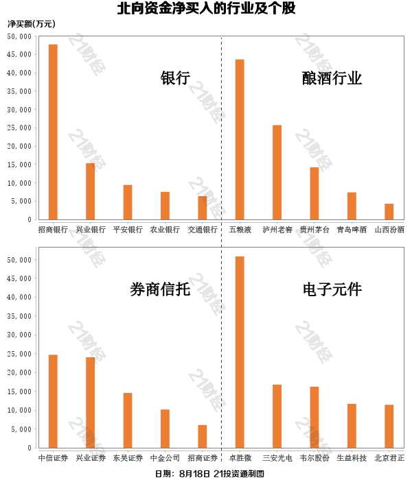 据21投资通(微信号ID:touzit21)智能监测,8月18日,北向资金净买入34.33亿元,其中沪股通净买入25.35亿元,深股通净买入8.97亿元。