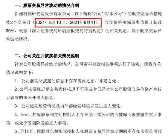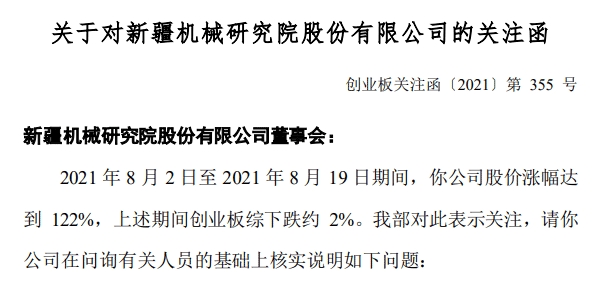 8月20日,针对新研股份前期的股价异常波动,深交所向其发出关注函,要求公司对相关问题进行核实。