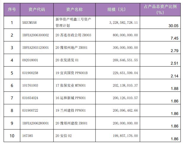 (图:“阳光金12M添利6号”2021年二季度末前十大持仓,来源:该产品二季报)