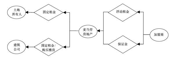 在特许经营加盟模式下,麦当劳拥有这些餐厅的土地及建筑所有权,或者长期租赁合同,再转租给加盟商,麦当劳不负责日常经营,只从加盟商处收取租金、收入一定比例的特许权使用费及初始加盟费。以在2017年为例,麦当劳主营业务的税前利润高达55%部分由地产模式所产生。