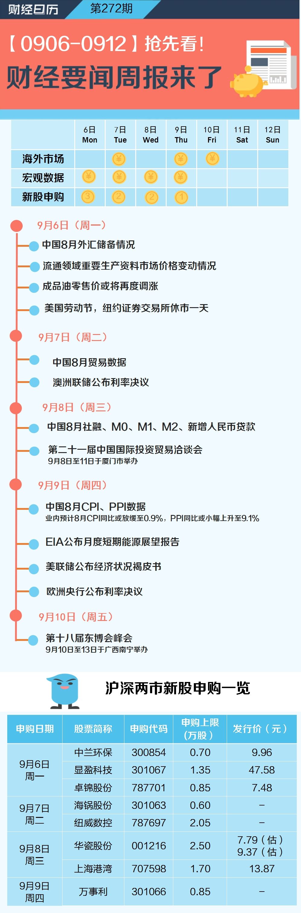未来一周(9月6日-9月12日)看点: