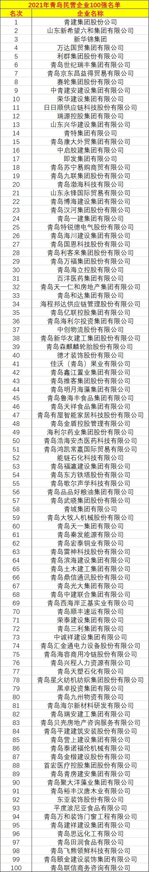 2021年青岛民企百强出炉
