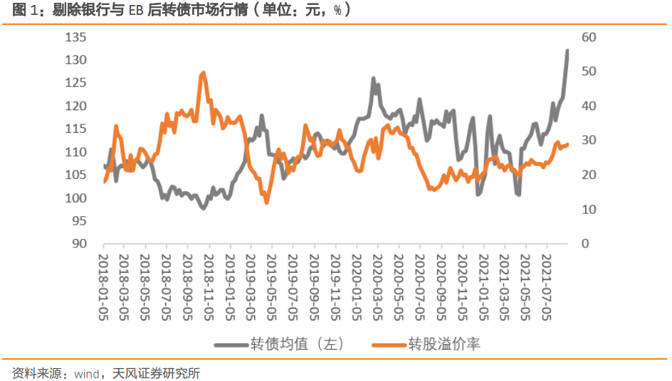 本周转债行情持续走高。中证转债指数收于415.67点,再次创今年以来新高,周涨幅2.19%,明显优于主要股指。权益市场方面,沪深300和中证2000分别微涨0.33%、0.69%,创业板指下跌4.76%。成交额方面,A股日均成交额环比上涨15.00%达15553.49亿元的高位,转债日均成交额环比上涨11.38%,再次站上805.54亿元的相对高位。在转债上行行情下,目前转债价格和估值均处于较高位置,截至9月3日,剔除银行与EB后,转债加权均值达131.98元,再次刷新2018年以来新高,转股溢价率28.90%,位于2018年以来65%的历史分位水平。