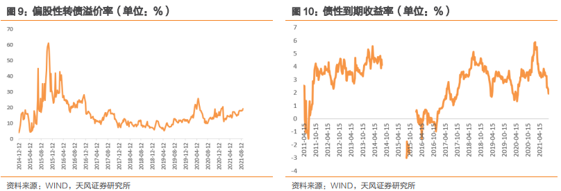 本周估值变动情况,本周偏股性转债转股溢价率下降1.02个百分点到19.40%,偏债性到期收益率下降0.31个百分点至1.94%。