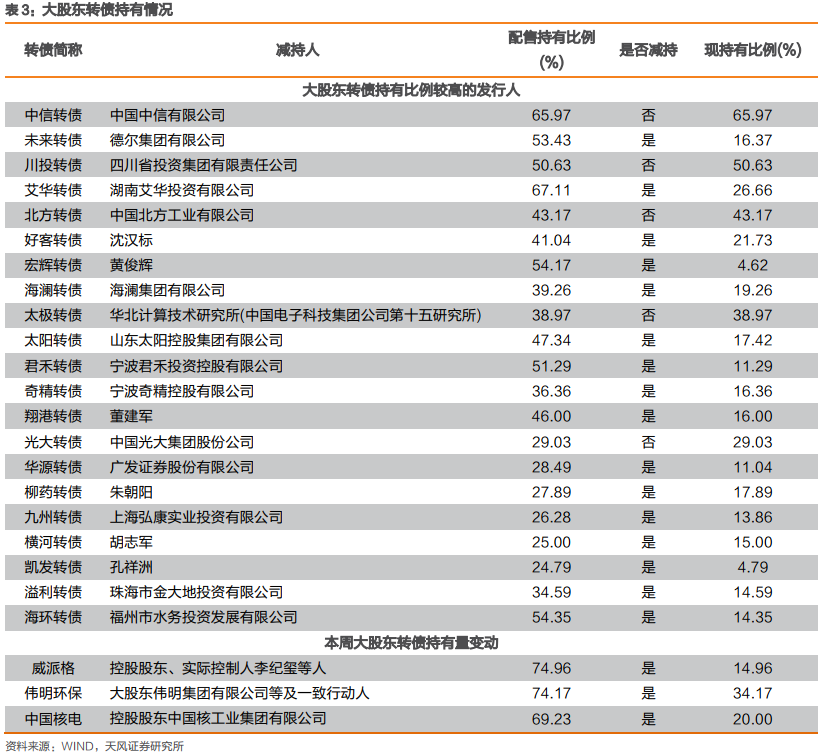 本周发布转债减持公告的公司:威派格、伟明环保、中国核电。