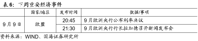 德国10年期国债收益率、日本10年期国债收益率均上行。本周四(9月2日),德国10年期国债收益率为-0.40%,较上周五上行5BP;日本10年国债收益率为0.040%,较上周五上行1.10BP。