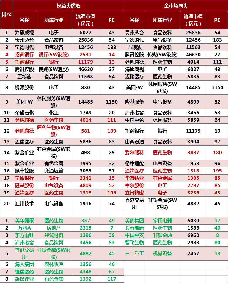 重仓股:行业更为均衡,整体估值更低,兼顾成长与周期