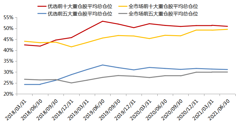 权益类公募优选及全市场集中度变化(2018Q1-2021Q2)