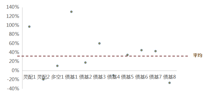 对比全市场,类固收优选基金债券加仓幅度更小,股票减仓,体现了更为积极的大类资产配置动态管理。