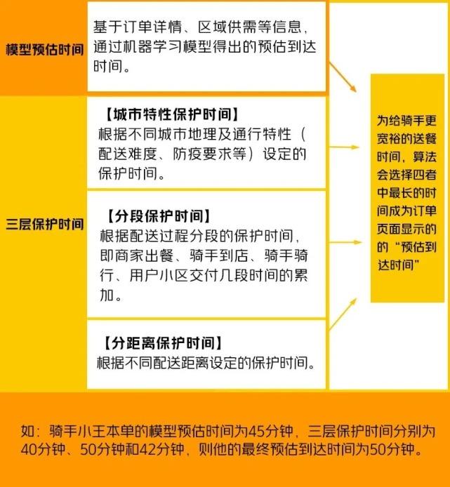美团公开算法规则显示,美团对配送时间有 “历史数据模型估算时间”“城市通行状态特性下估算时间”“出餐到店取餐等配送各场景累加估算时间”和“配送距离估算时间”四种算法。
