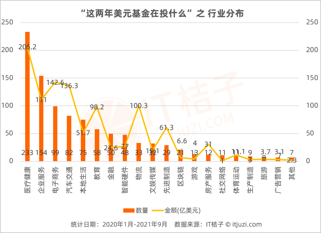 那,这两年,美元基金都在投什么?我们通过几个数据图看一下。
