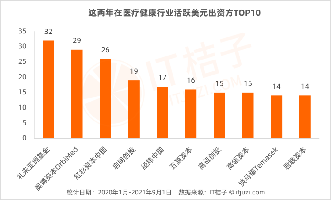 在美元流入最大头的医疗健康领域,我们发现投资门槛相当高。根据 IT 桔子数据,这两年在医疗领域出资较为频繁的机构有礼来亚洲基金、奥博资本、红杉中国、启明创投、经纬中国、五源资本、高瓴创投、淡马锡、君联资本等。