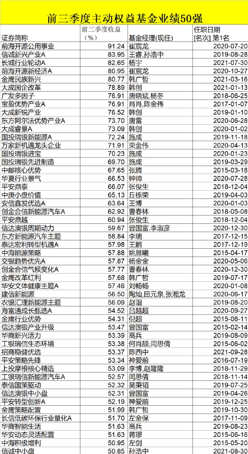 A股市场结构性行情深度演绎,主动权益基金业绩表现分化明显。重仓热门赛道的基金年内收益率领先的同时,聚焦于今年相对冷门板块的基金业绩表现则较差。因为前三季度消费、金融等板块表现一般,多位明星基金经理业绩表现欠佳。