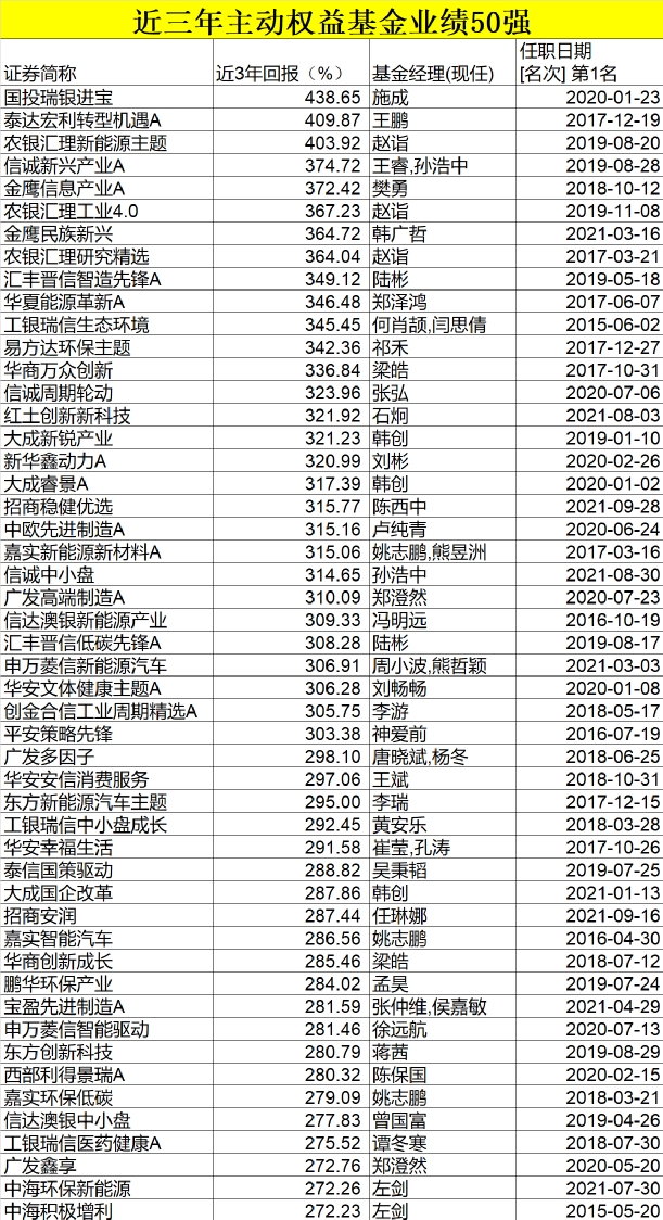 其中业绩最好的是国投瑞银进宝,该基金近三年收益率达到438.65%。同样收益超400%的还泰达宏利转型机遇A、农银汇理新能源主题,收益率达到409.87%、403.92%。此外,信诚新兴产业A、金鹰信息产业A、农银汇理工业4.0等表现也不错。