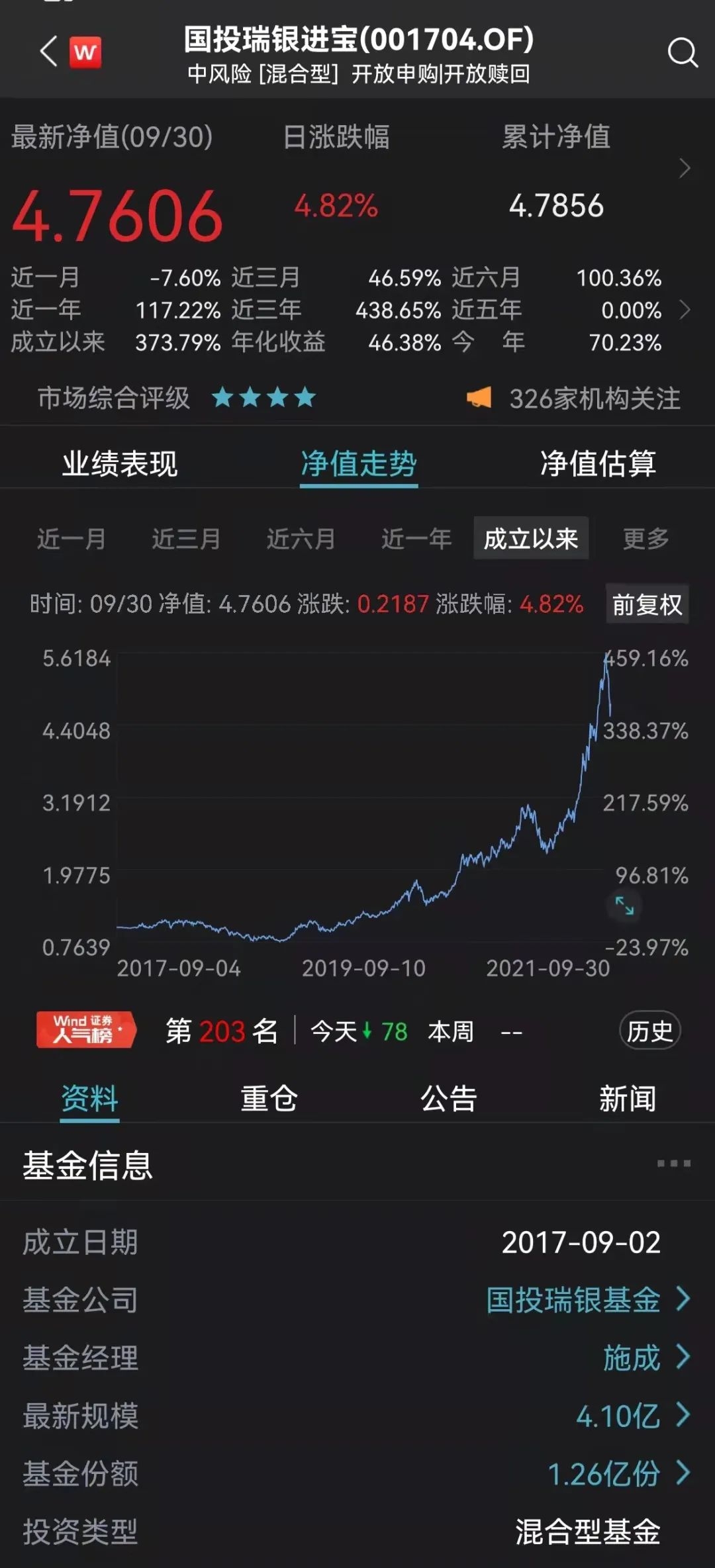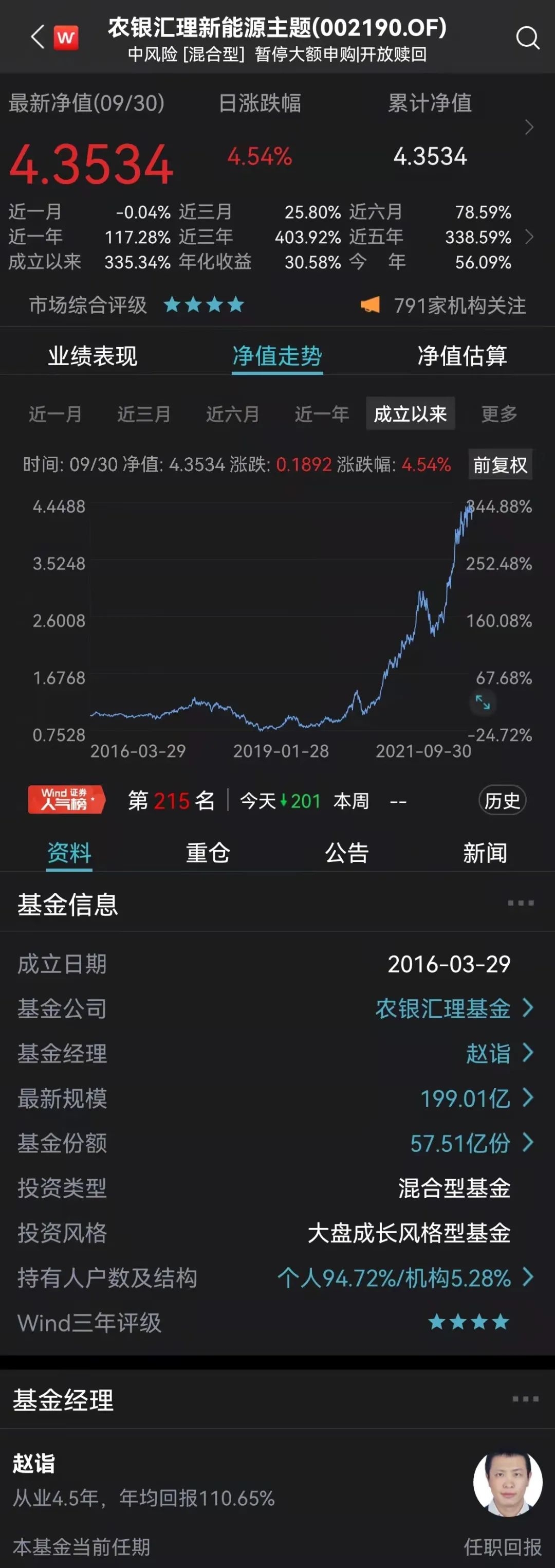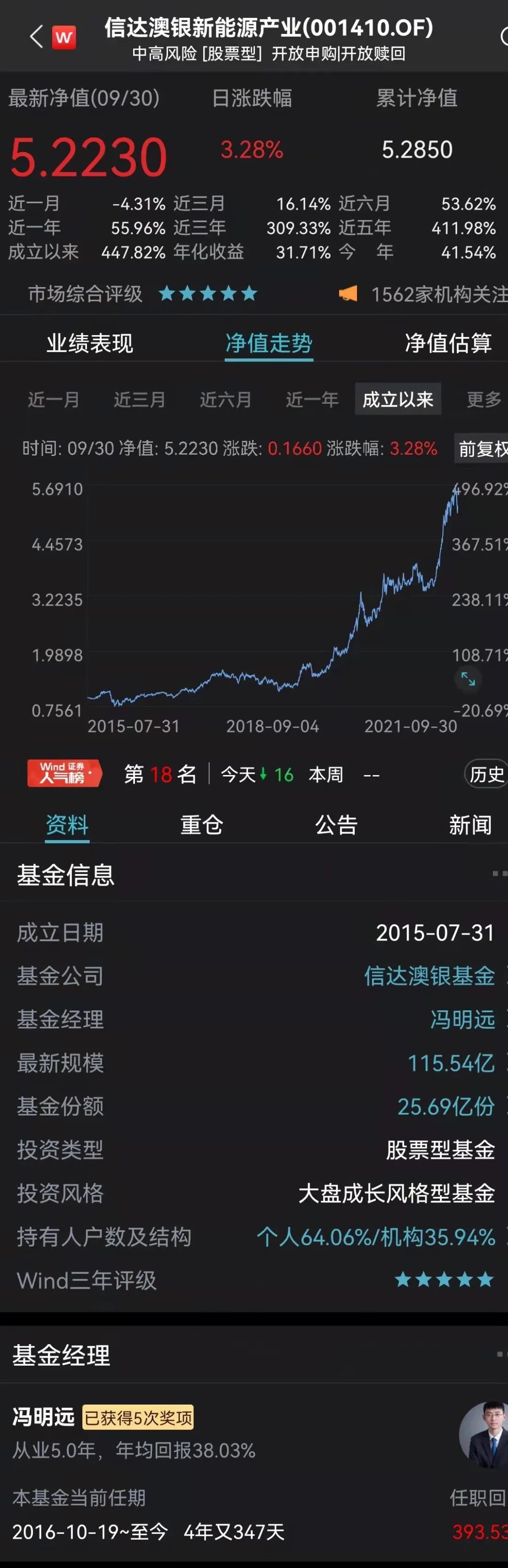 值得一提的是,今年该基金净值增长率一度超过100%,成为“翻倍基”。但近期因为新能源板块出现震荡,因此基金净值波动较大。