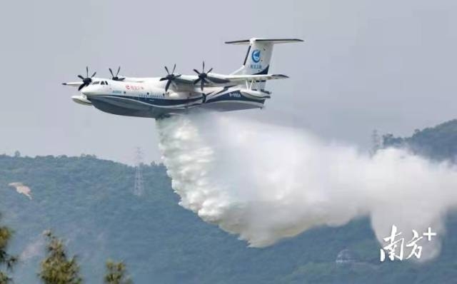 最能体现珠海的通用航空产业实力的,是“珠海造”AG600“鲲龙”大型水陆两栖飞机。AG600现场进行飞行投水演示,充分展示了强大的火场灭火能力。