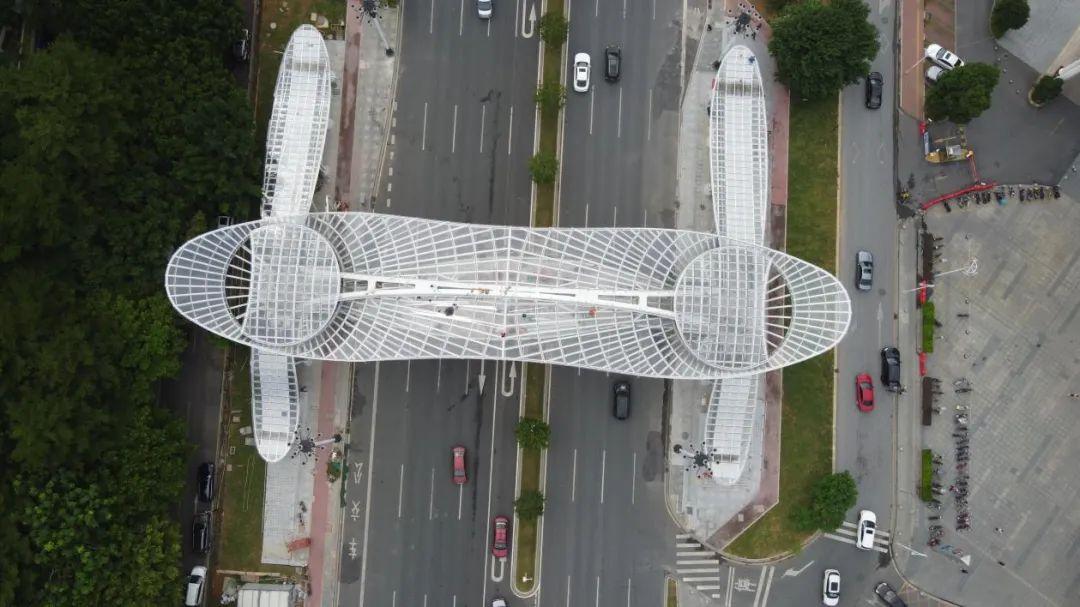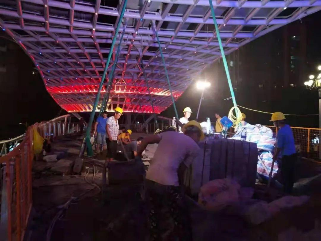 万科城人行天桥以“生态之翼,科创之门”为设计理念,优美的造型结合五彩斑斓的灯光,犹如森林中展开的伞状植物,又如翩翩起舞的蝴蝶,独具一格的造型设计成为了科学城一道靓丽的风景线。