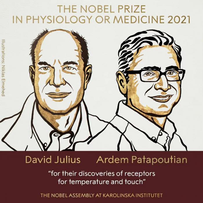 21世纪经济报道记者朱萍 北京报道 2021年10月4日17点30分,2021年诺贝尔生理学或医学奖揭晓,获奖者为David Julius和Ardem Patapoutian,获奖理由:发现了温度和触觉感受器。这些知识用于开发一系列疾病的治疗方法,包括慢性疼痛。奖金额度达1000万瑞典克朗(约合115万美元)。