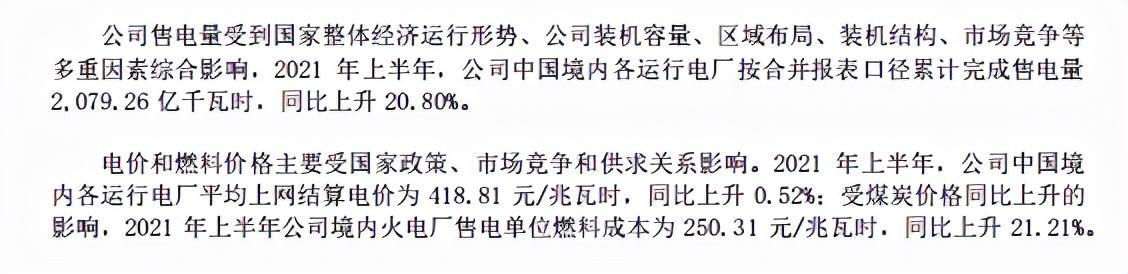 今年上半年,华能国际实现营收951.2亿元,同比增长20.17%;归母净利润42.82亿元,同比下滑25.30%。在半年报中,该公司解释称,“受煤炭价格同比上升的影响,公司境内火电厂售电单位燃料成本为250.31元/兆瓦时,同比上升21.21%”。