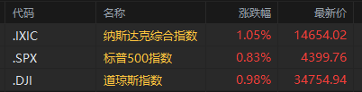 美参议院就紧急债务上限延长至12月初已达成一致,美股三大指数集体收涨,纳指涨1.05%,道指涨0.98%,标普500指数涨0.83%。