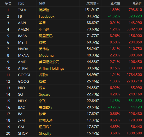 中概股也跟随大盘大幅走高,纳斯达克金龙指数涨5.4%,收于10698点。雾芯科技涨12.26%,有道涨11.93%,虎牙涨10.88%,知乎涨10.79%,爱奇艺涨9.66%,哔哩哔哩涨9.54%,网易涨8.29%,阿里巴巴涨超8.26%,腾讯ADR涨7.80%,拼多多涨6.30%,滴滴涨3.30%,好未来涨3.26%。