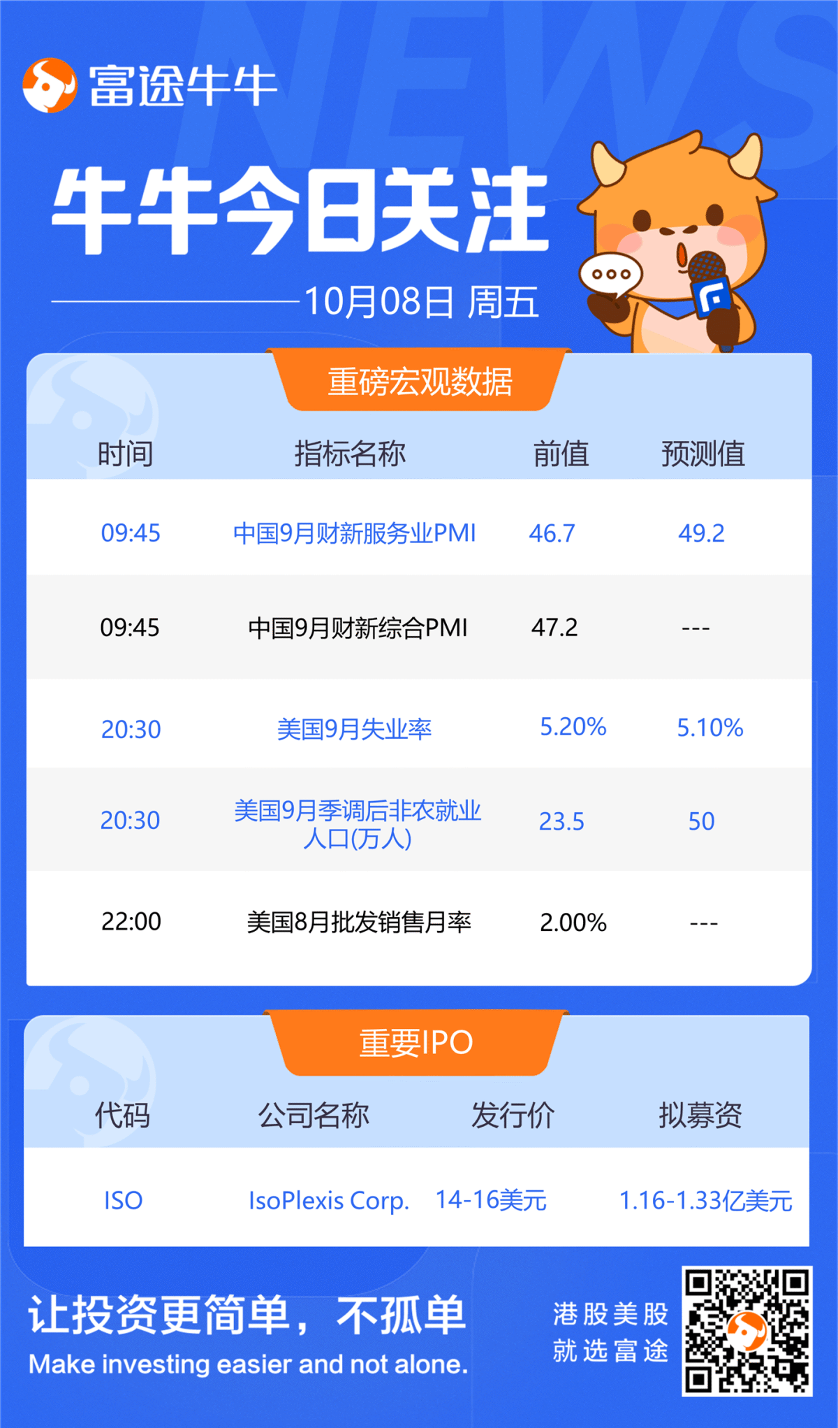 新股方面,美股$IsoPlexis Corp.(ISO.US)$将上市。