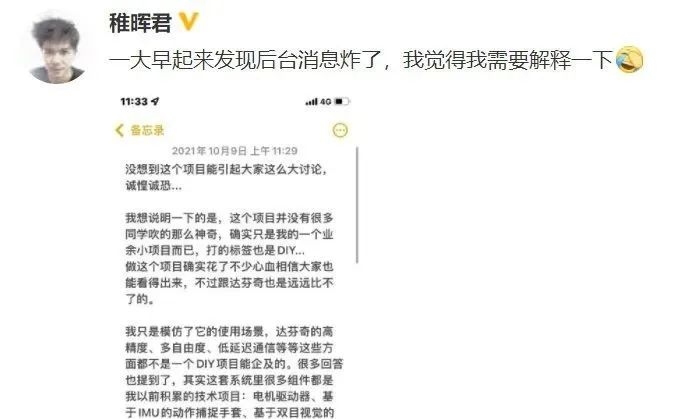 新闻上热搜后,稚晖君本人回应:业余花心血做的小项目,系统里很多组件是以前积累的,不是从头造起“只花4个月”;非天才也非少年,只是个爱折腾的极客,更愿意称呼自己为“野生钢铁侠”。