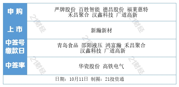 10月11日至15日将有14只新股可申购,是今年以来新股发行数量最多的一周,包括科创板、创业板各6只,以及沪市主板2只。