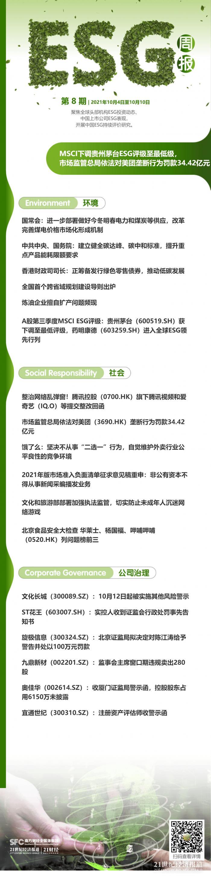 6、A股第三季度MSCI ESG评级:贵州茅台(600519.SH)获下调至最低评级,药明康德(603259.SH)进入全球ESG领先行列
