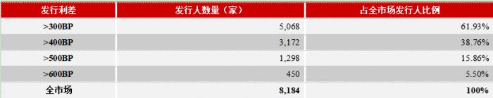 表1 发行利差>400BP的主体比例为38.76%,贴近近年全球投机级主体比例