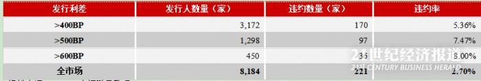 (一)高收益主体违约率显著高于全市场,且发行利差越高,违约率也越高