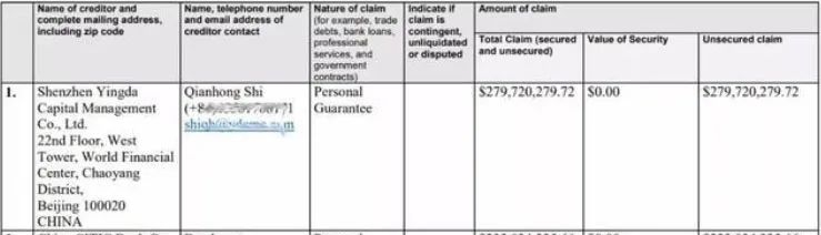 尽管双方均未公布英大资本的具体融资金额,但2019年贾跃亭申请个人破产时的前20大债主名单显示,英大资本的索赔金额为2.797亿美元,约合18.03亿人民币。