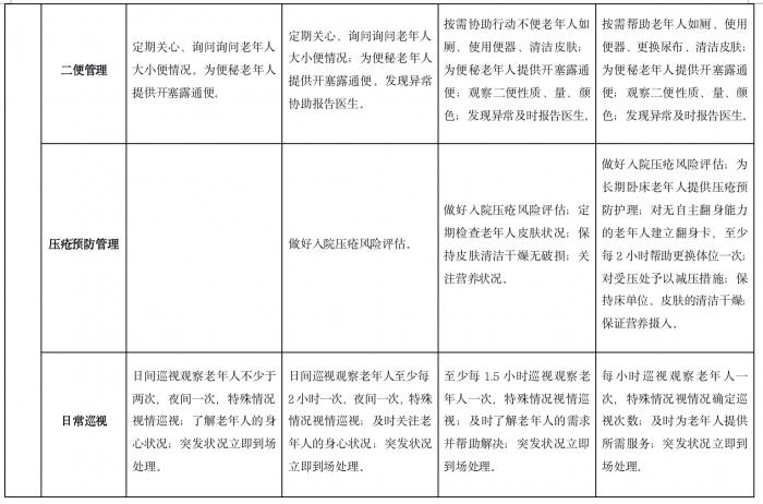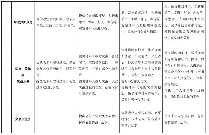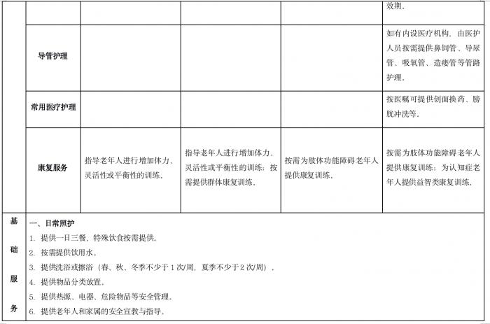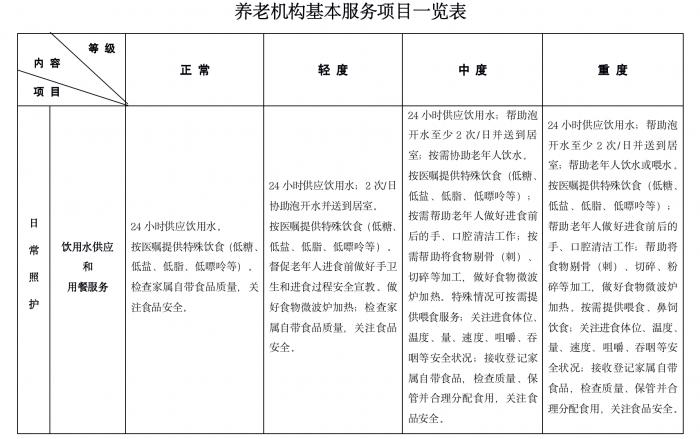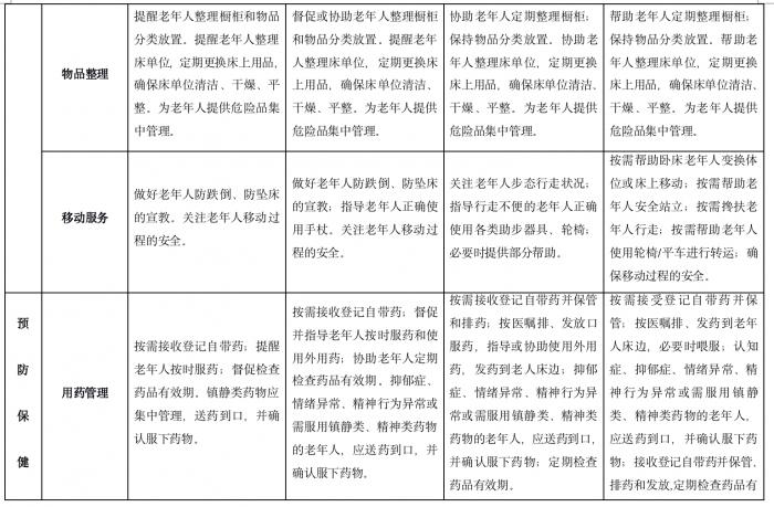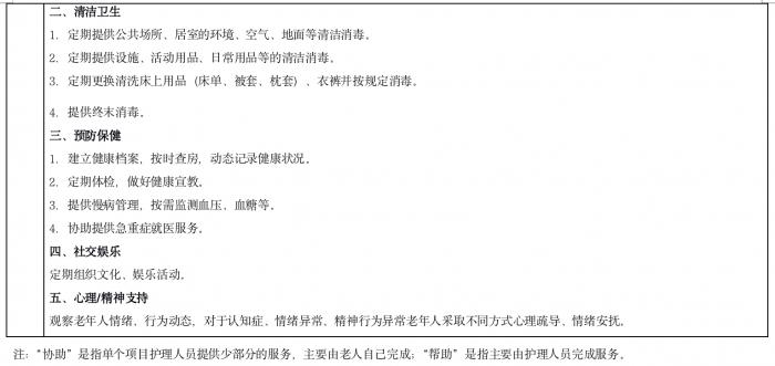 同时,高一等级基本服务项目的难易程度、工作量及服务风险均为低一等级的提升;每个基本服务项目及服务要求应符合《养老机构服务和设施要求》(DB31/T685-2019)的规定,并应与现行行业相关标准保持一致。