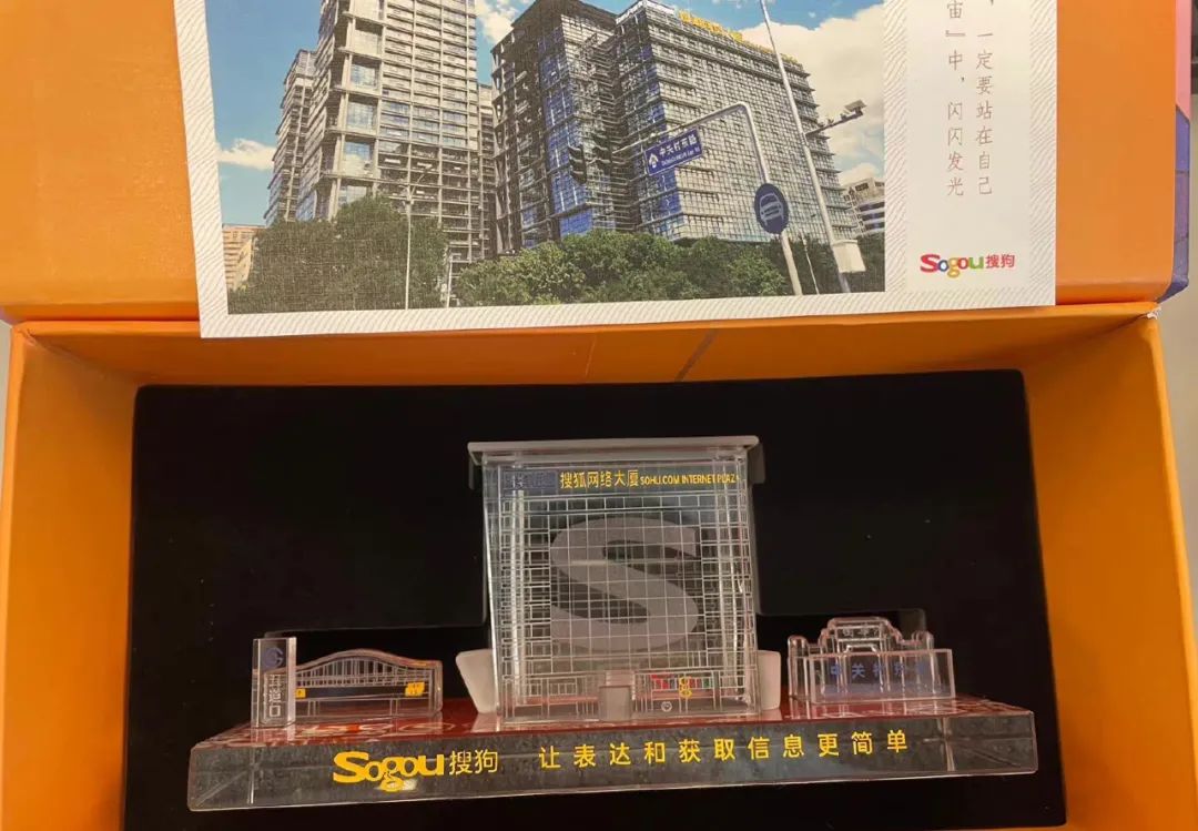 其实,在9月17日,搜狗曾给员工送过一份中秋节礼物,一套搜狗网络大厦的模型。有大厦的主体,有标志性的五道口地铁站,有大家熟悉的楼下的中关村东路,以及不远处的清华大学校门。