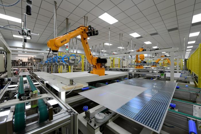 (图:晶澳科技位于义乌的生产基地,产线故障通过钉钉机器人推送到责任人)