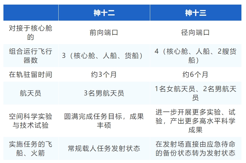 在10月14日召开的神舟十三号载人飞行任务新闻发布会上,中国载人航天工程新闻发言人、载人航天工程办公室副主任林西强介绍,与神舟十二号任务相比,神舟十三号任务主要有几方面不同,其中包括,航天员将首次在轨驻留6个月,这也是空间站运营期间航天员乘组常态化驻留周期;此外,中国女航天员将首次进驻中国空间站,航天员王亚平也会成为中国首位实施出舱活动的女航天员。