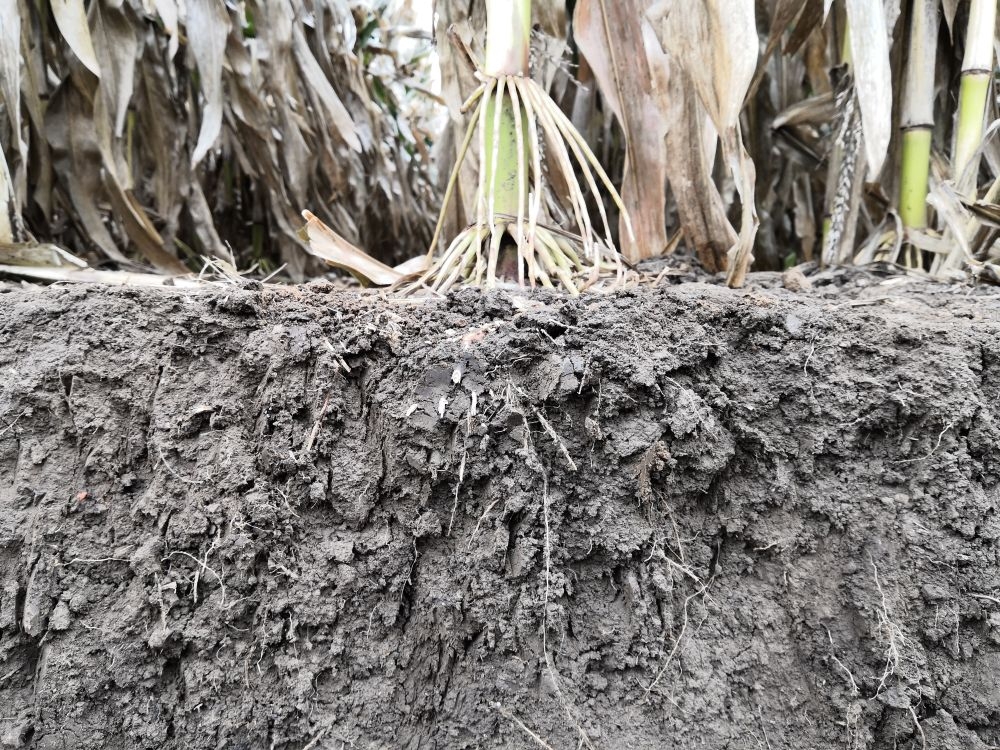 10月9日,梨树县泉眼沟村保护性耕作地块的玉米根系。新华社记者薛钦峰摄