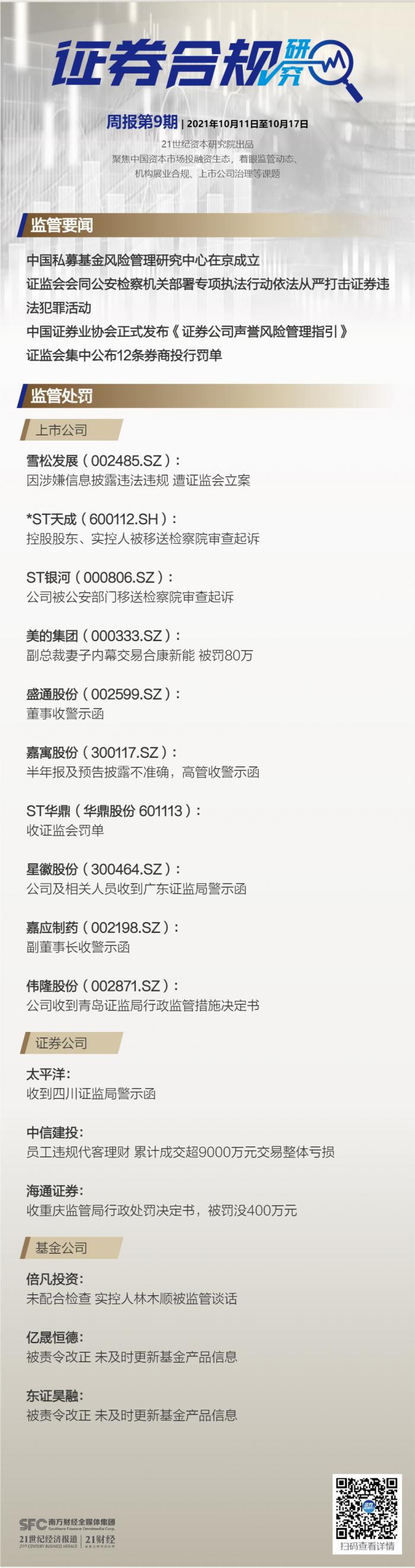 10月16日,嘉应制药公告,因未及时履行披露信息披露义务,上市公司、董秘徐胜利、第一大股东老虎汇实控人冯彪、拟新晋实控人朱拉伊均被采取出具警示函的行政监管措施。其中徐胜利因未勤勉尽责,被认定对问题负主要责任。