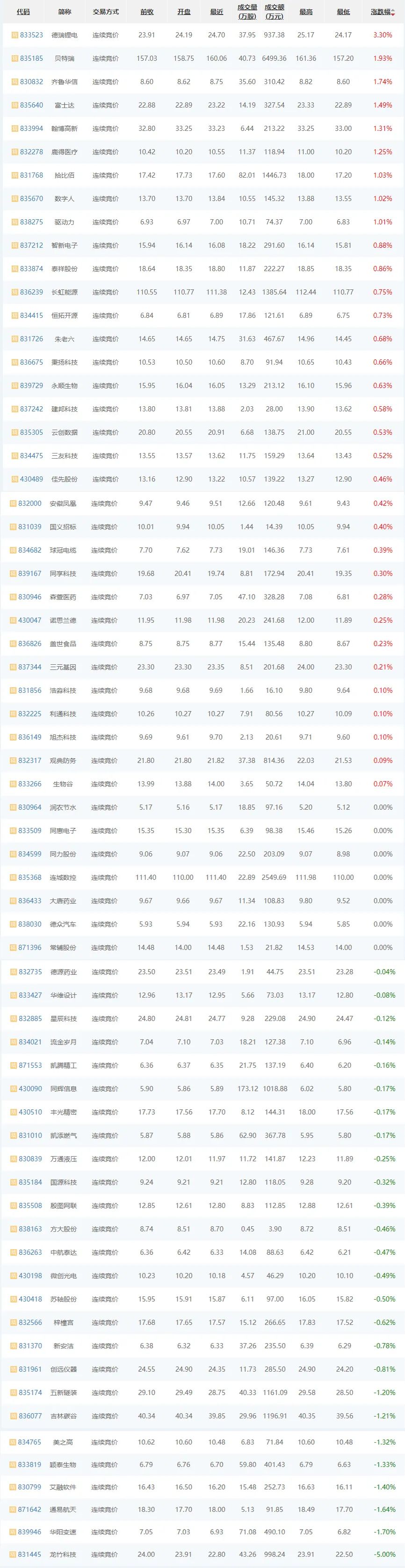 截至10月19日收盘,今日成交金额为8.58亿元,精选层成交金额为2.71亿元,创新层成交金额为4.73亿元,基础层成交金额为1.13亿元;今日成交股数为12269.31万股,精选层成交股数为1381.67万股,创新层成交股数为6719.21万股,基础层成交股数为4168.42万股。