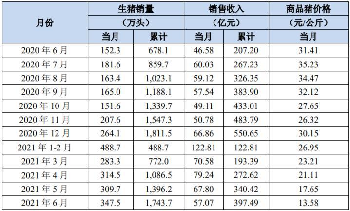 再结合牧原股份每月的销售数据来看,去年6月份销量为152.3万头,今年6月份销量已经高达347.5万头,增幅达128.17%。