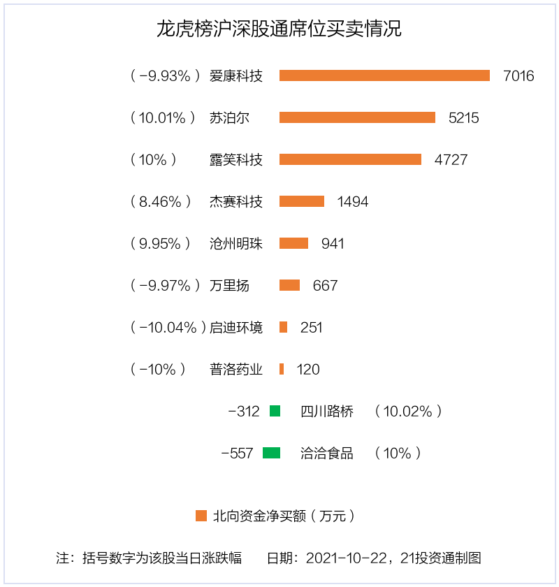 据21投资通(微信号ID:touzit21)智能监测,22只个股龙虎榜出现了机构的身影,北向资金参与龙虎榜中的个股共涉及10只。