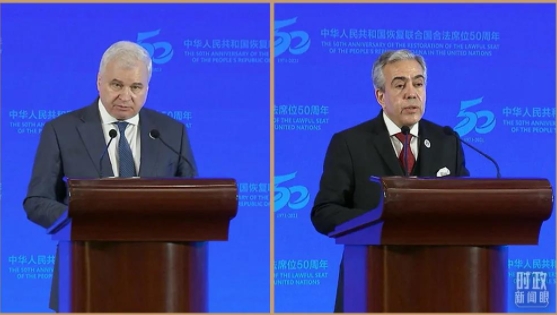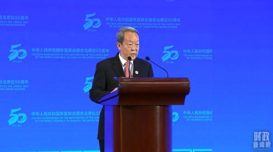 今年的同一天,中华人民共和国恢复联合国合法席位50周年纪念会议在北京隆重举行。
