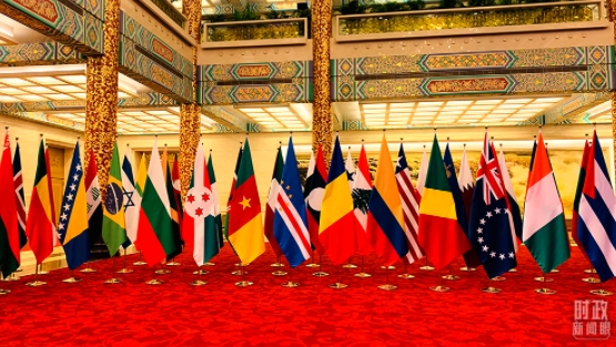 △纪念会议现场,联合国各会员国国旗组成的旗阵。(总台央视记者范一鸣拍摄)
