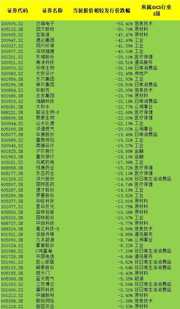 进一步看,今年以来,已经有52家公司在上市一段时间后,相继跌破发行价。