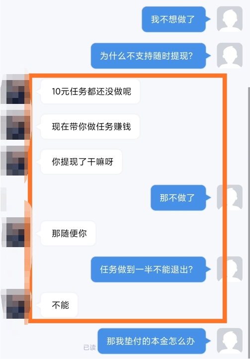 刷第一单时,骗子会小额返款让人尝到甜头,当交易数额变大后,骗子就会以各种理由拒不返款并拉黑。